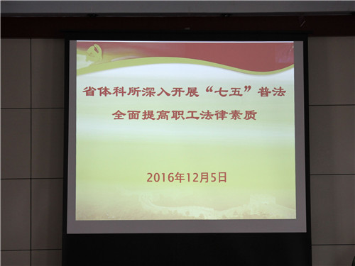 一是省体科所结合工作实际开展主题为“深入开展七五普法,全面提高职工法律素质”的主题宣传教育活动。活动主要为职工发放了“七五”普法法律读本;召开“七五”普法宣传动员大会。通过此次动员宣传活动的开展进一步提升了广大干部职工的法律素质和法律意识,为推动单位“七五”普法工作的顺利开展奠定了良好的基础。