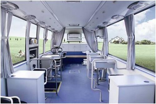 该监测车自带柴油发电机组和市电接入设备,可不受地理环境的影响全天候为车内所有监测仪器设备提供稳定的电源保证。为增加测试的舒适度另外还加装了两套外挂空调系统。监测车内主要分为登记区、检测区、休息区等主要功能区,装备了身高、体重、握力、反应时、血压、肺活量、闭眼单脚站立、坐位体前屈、选择反应时、纵跳、俯卧撑、仰卧起坐、台阶实验、亚健康分析仪、体质成分分析仪、骨密度仪、功率自行车等15台具有先进水平的高科技检测设备,同时配备数据资料收集、处理分析的全套电脑设备。可以进行平衡能力、耐力、反应、骨密度、身体成分等近20项技术含量比较高的检测。通过这一科学系统的测试、分析和评价,受试群众将可以准确地了解自己的体质状况,获得科学健身的运动处方,使锻炼更具有针对性和科学性,从而达到科学健身的目的。
