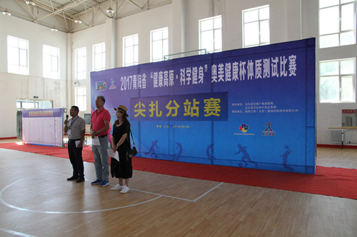此次尖扎分站赛是2017青海省国民体质监测赛的第四站。省体科所科研人员及专家和尖扎县国民体质监测中心监测人员进行了现场免费体质测试、健身指导和健身知识讲座。此次体质监测赛共有11项比赛和测试内容,包括,台阶测试,俯卧撑测试,闭眼单脚站测试,坐位体前屈测试,身高体重测试,肺活量测试,握力测试,反应时测试,纵跳测试,仰卧起坐测试,以及免费为群众开展体质监测等内容。尖扎县文体局在场地布置,宣传等方面做了大量的工作,同时对本次活动的时间、地点、测试内容等进行了宣传,吸引了大量群众前来测试和咨询,共为2500余群众进行了监测和出具监测报告与运动处方,为尖扎县广大群众了解和宣传体质监测、科学健身锻炼起到了积极作用。