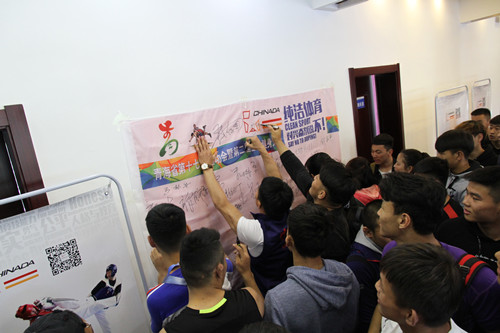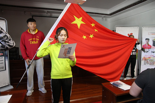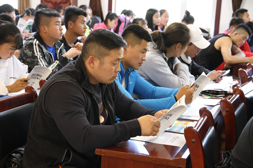 省体育局反兴奋剂中心工作人员结合典型案例向运动员、教练员和辅助人员讲解了兴奋剂的种类、危害以及预防误服误用等方面的知识。最后,全体运动员、教练员和辅助人员起立庄重宣誓坚决拒绝兴奋剂。