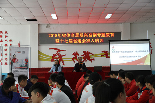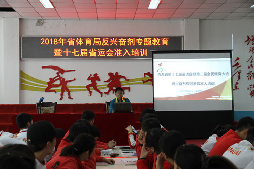 为捍卫纯洁体育精神,维护良好的赛风赛纪,营造健康健身的省运会氛围,5月9日青海省第十七届运动会暨全民健身大会反兴奋剂工作部、青海省体育局反兴奋剂中心进行2018年省体育局反兴奋剂专题教育暨十七届省运会准入培训。省体工一大队、二大队及省体育职业技术学校教练员、运动员及辅助人员共500 多人参加了培训。这是我省首次在省级大赛中自主开展运动员反兴奋剂教育及参赛资格准入培训活动,同时也标志着我省2018年反兴奋剂工作全面展开。