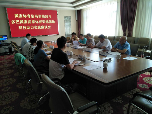 7月21日下午,“国家体育总局训练局与多巴国家高原训练基地科技助力交流座谈会”在基地举行,总局训练局副局长孙晓桦等一行五人、省体科所、多巴基地相关领导、科研和工作人员参加了会议。