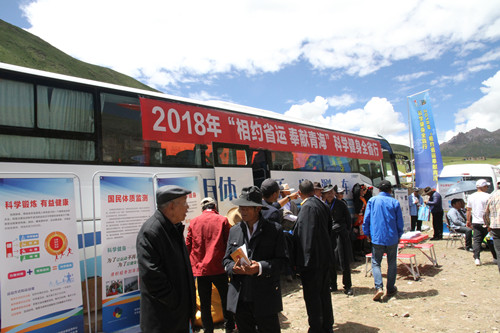 同时为深入贯彻学习省委十三届四次全会、省政府党组扩大会议及国家体育总局赵勇副局长调研青海体育工作讲话精神,由青海省体育科学研究所承办的2018年青海省“相约省运奉献青海”科学健身全省行系列活动也走进了玉树。在海拔4200米的地方,国民体质监测专家和科技人员,为当地群众开展国民体质监测、科普知识宣传等活动,分发健身知识宣传手册1000余份,为高原藏区同胞进一步宣传和倡导科学健身理念,不断提高全民健身科学化水平,推动和落实2016-2020全民健身计划起到了积极作用。